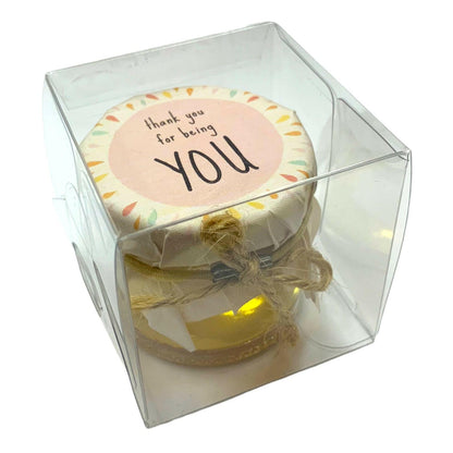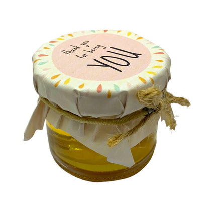This mini honey jar is the perfect way to say "Thank You For Being You." It's a thoughtful and unique gift that shows your appreciation for someone special. Made from all-natural honey, this sweet little jar is sure to put a smile on your loved one's face.