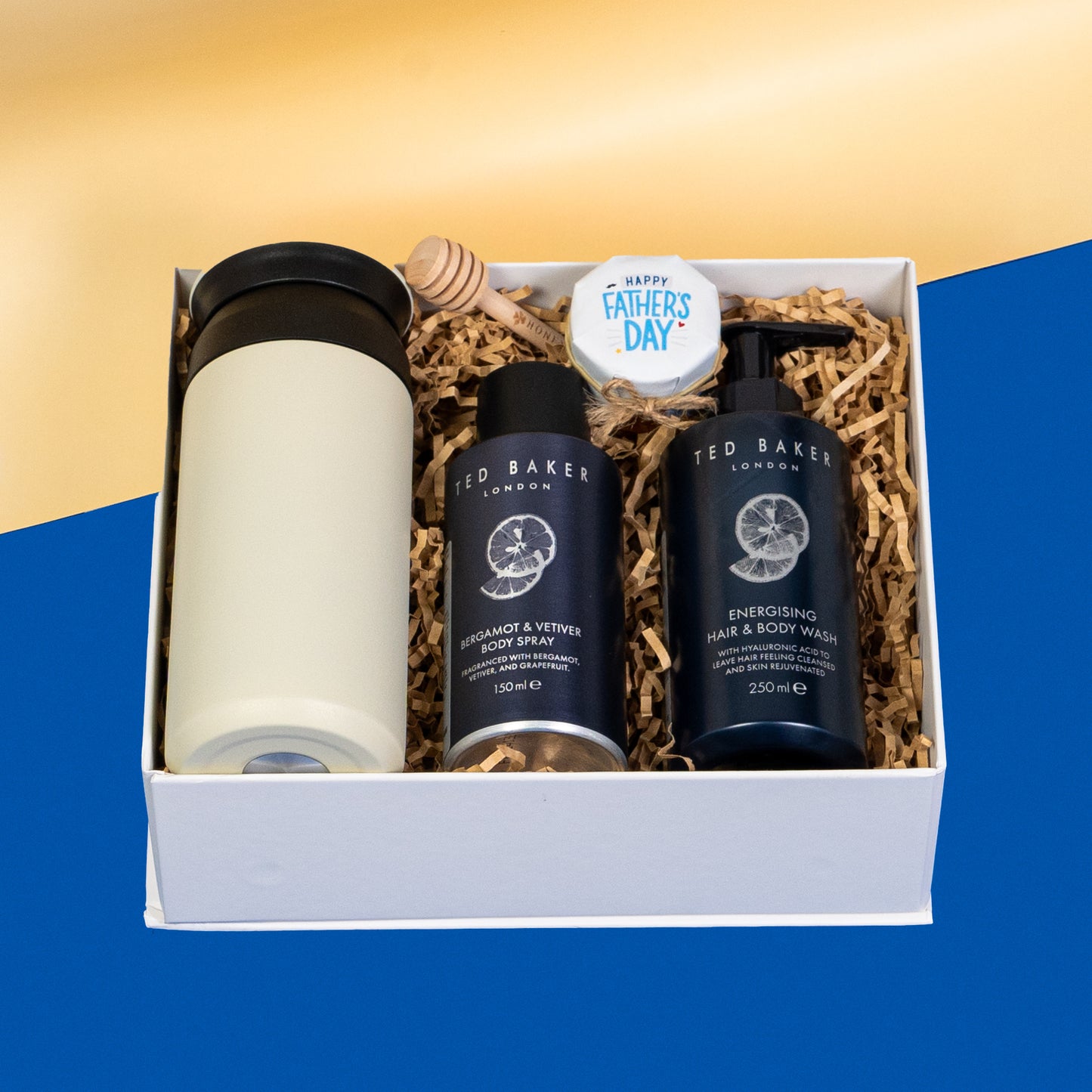 With luxurious grooming products, a stylish tumbler, and a touch of natural sweetness, this thoughtfully curated hamper is a simple yet meaningful way to show your love and appreciation.