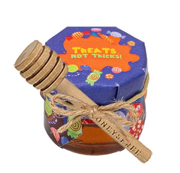 Ready for some Halloween fun? The Treats or Tricks Mini Honey Jar is packed with pure, golden honey and wrapped in festive, spooky designs that capture the playful spirit of the season.